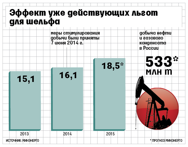 Необходимо доинвестировать зрелые месторождения – это более перспективно и менее рискованно, чем вложения в шельф, говорил недавно министр экономического развития Алексей Улюкаев. «Это та добыча, которая дает максимальный налоговый эффект, потому что шельф у нас полностью безналоговый», – объяснял он (цитата по «Интерфаксу»). Сейчас правительство обсуждает переход на два новых налога – на финансовый результат (НФР, предусматривает льготы для выработанных месторождений) и на добавленный доход (НДД). «Многие геологи считают, что вторая Западная Сибирь в России сосредоточена не в Восточной Сибири, не в Арктике, а в глубоких горизонтах Западной Сибири, где почти нет налоговых льгот», – заключает Выгон.