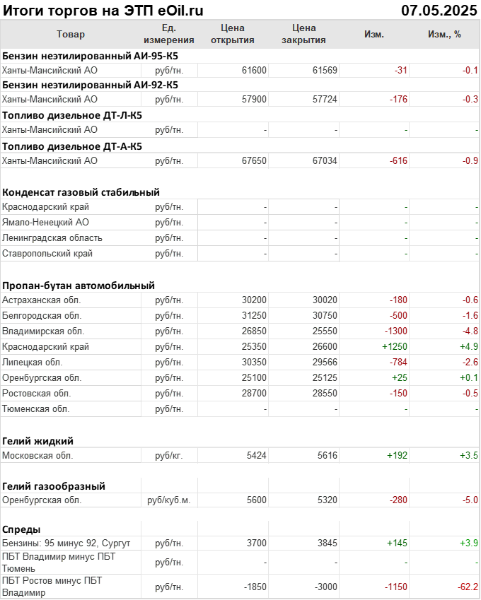 Итоги торгов на ЭТП eOil.ru 7 мая 2025