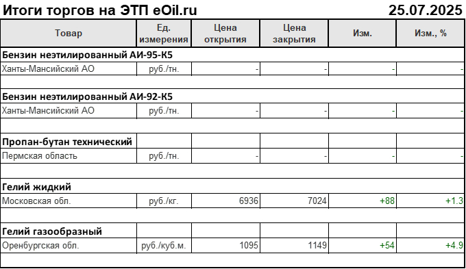 Итоги торгов на ЭТП eOil.ru с 21 по 25 июля 2025 года