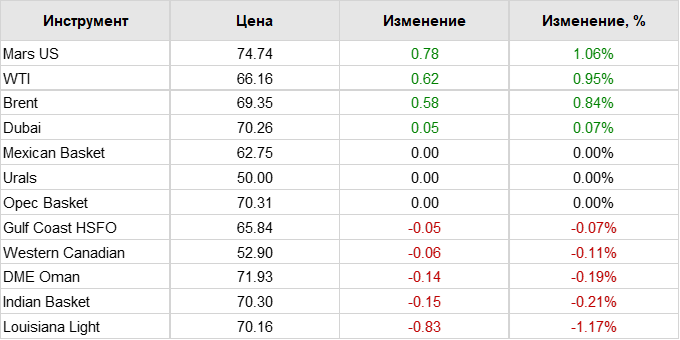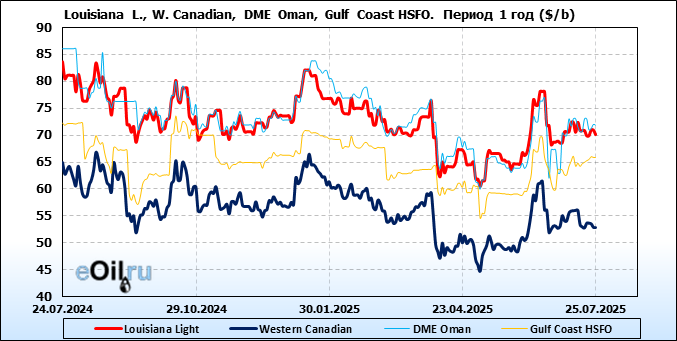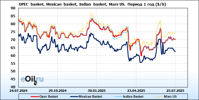 Нефть. Цены по сортам на 25 июля 2025