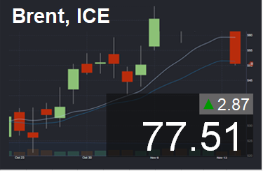 Цена в долларах за баррель. Для пересчета в доллары за тонну нефти марки Brent, необходимо цену умножить на 7,59.